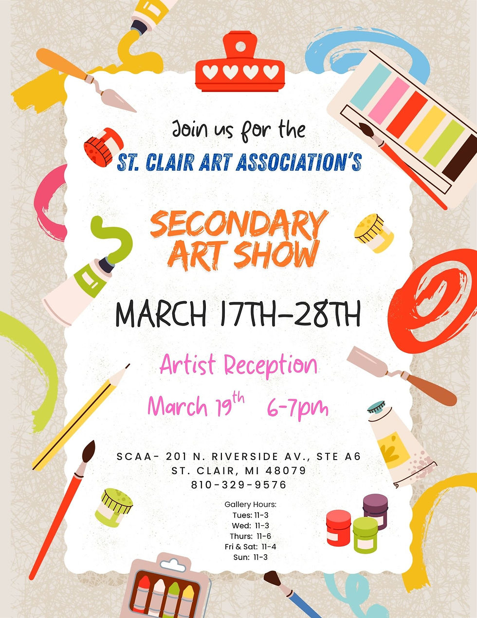 Join SCAA as we celebrate our local students! 2 shows in March! Elementary March 3rd thru the 14th and our Secondary students March 17th thru 28th!